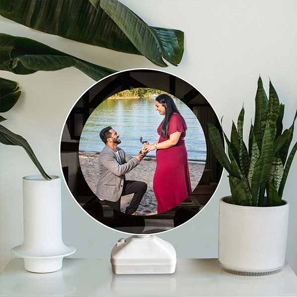 Add a magical touch to your memories with our LED Magic Mirror Photo Frame. By day, it looks like a stylish mirror, but when you turn on the LED lights, your chosen photo shines through beautifully, creating a stunning and unique display.