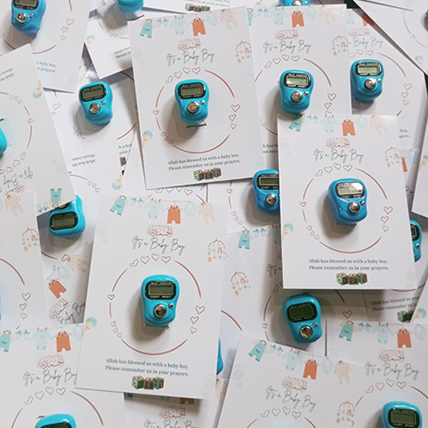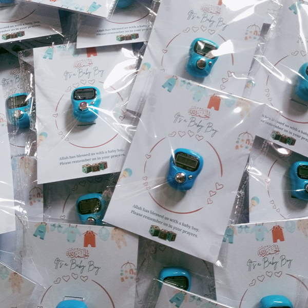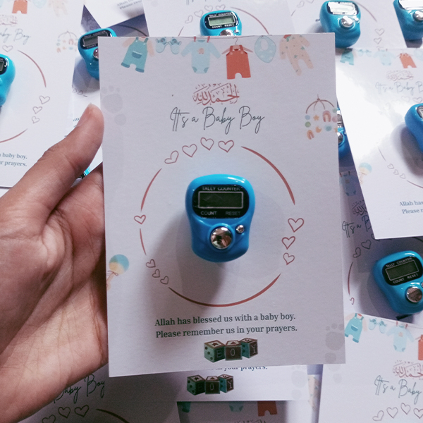 Welcome little blessings with our New Born Baby Card with Tasbeeh Counter Pack of 65 — the perfect blend of faith, love, and celebration. Each beautifully designed card comes with a premium digital Tasbeeh counter, making it a thoughtful token to share at baby announcements, aqeeqah, or any special event. Ideal for event giveaways or new born baby gifts, this set adds a touch of spirituality and charm to your celebrations.