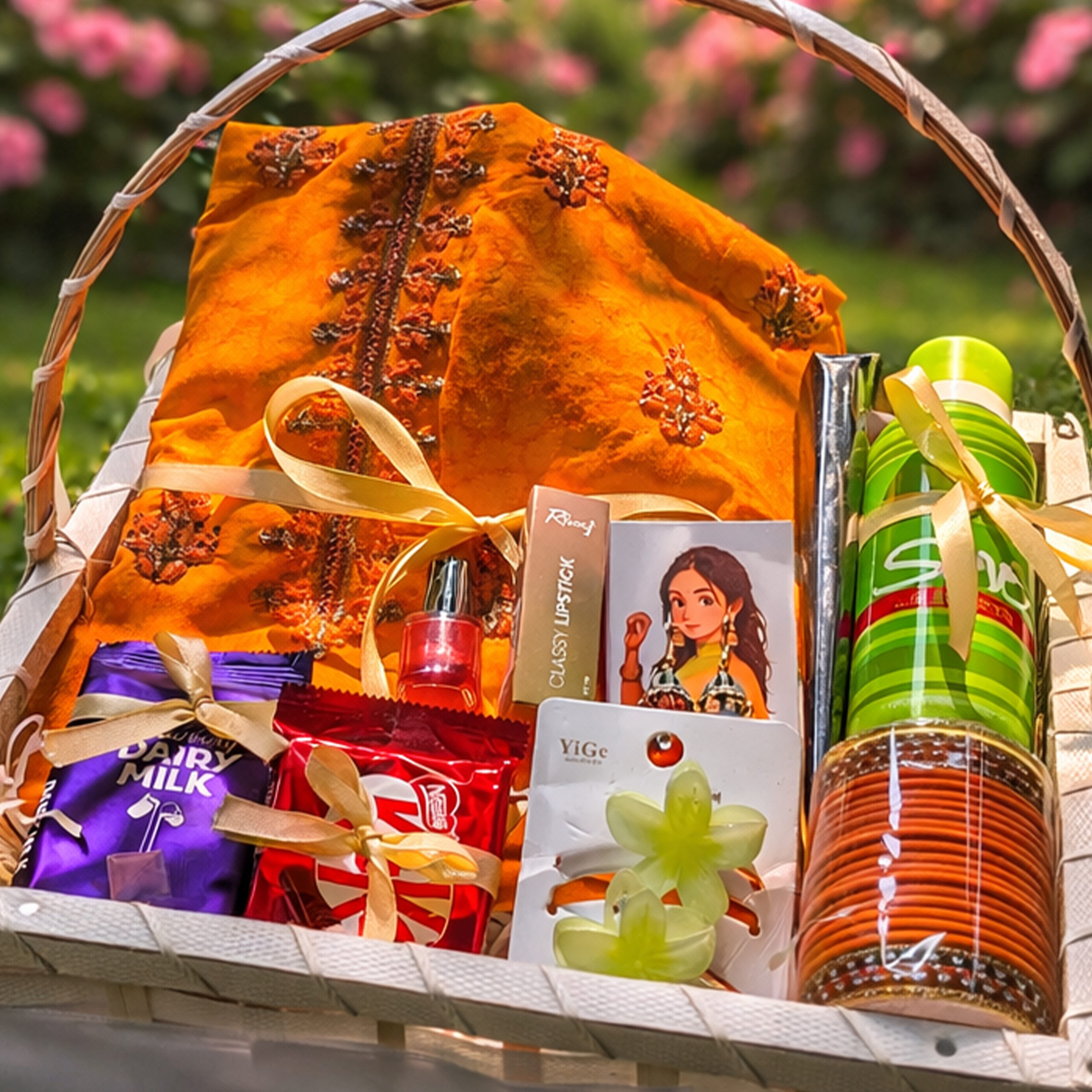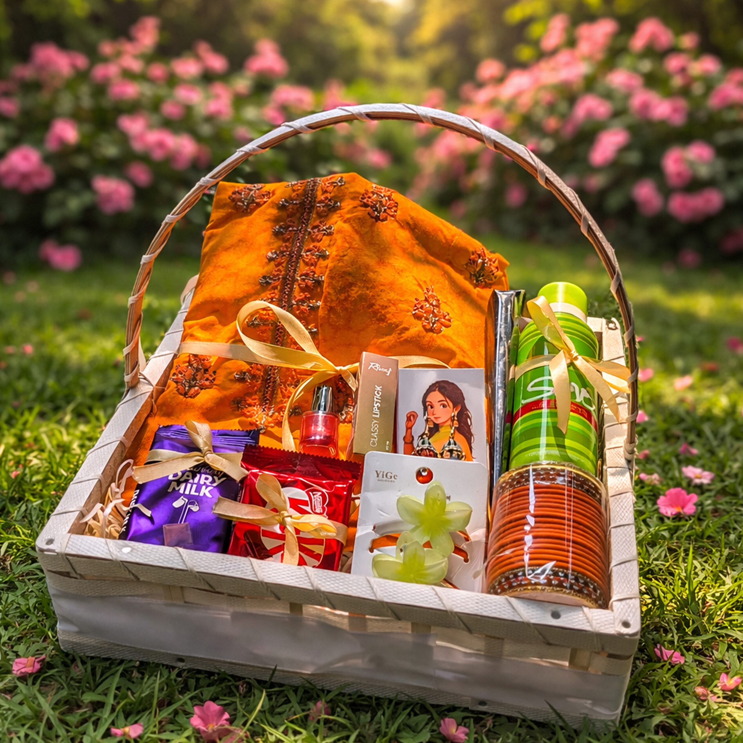 If you are searching for stylish and meaningful online Eidi gifts in Pakistan, this elegant basket is the perfect choice. Ideal for gifting your wife, sister, fiancée, or best friend, it offers everything she needs to shine on Eid. Carefully arranged with premium packaging, this Eid gift basket creates a luxurious and festive presentation.